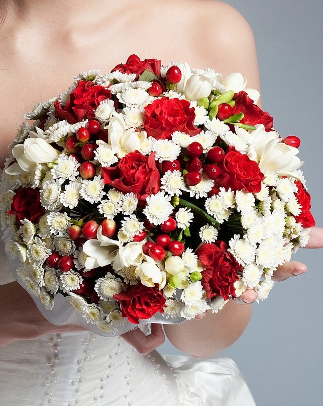 Букет невесты бело-красный, круглый. Ценаhttp://