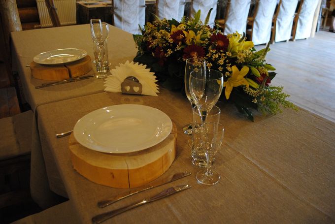 Сервировка слота молодых с березовыми спилами - фото 1076031 Агентство праздников "Этно Свадьба"