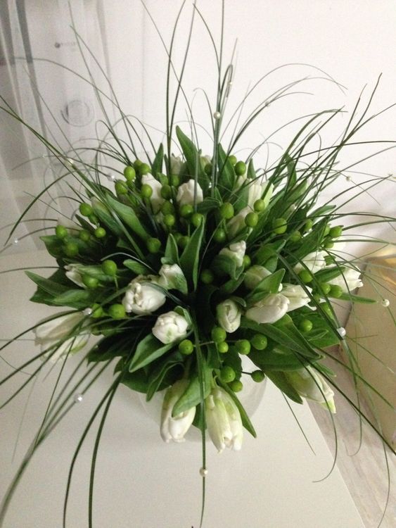 Весенний букет, тюльпаны, гиперикум, зелень, декор