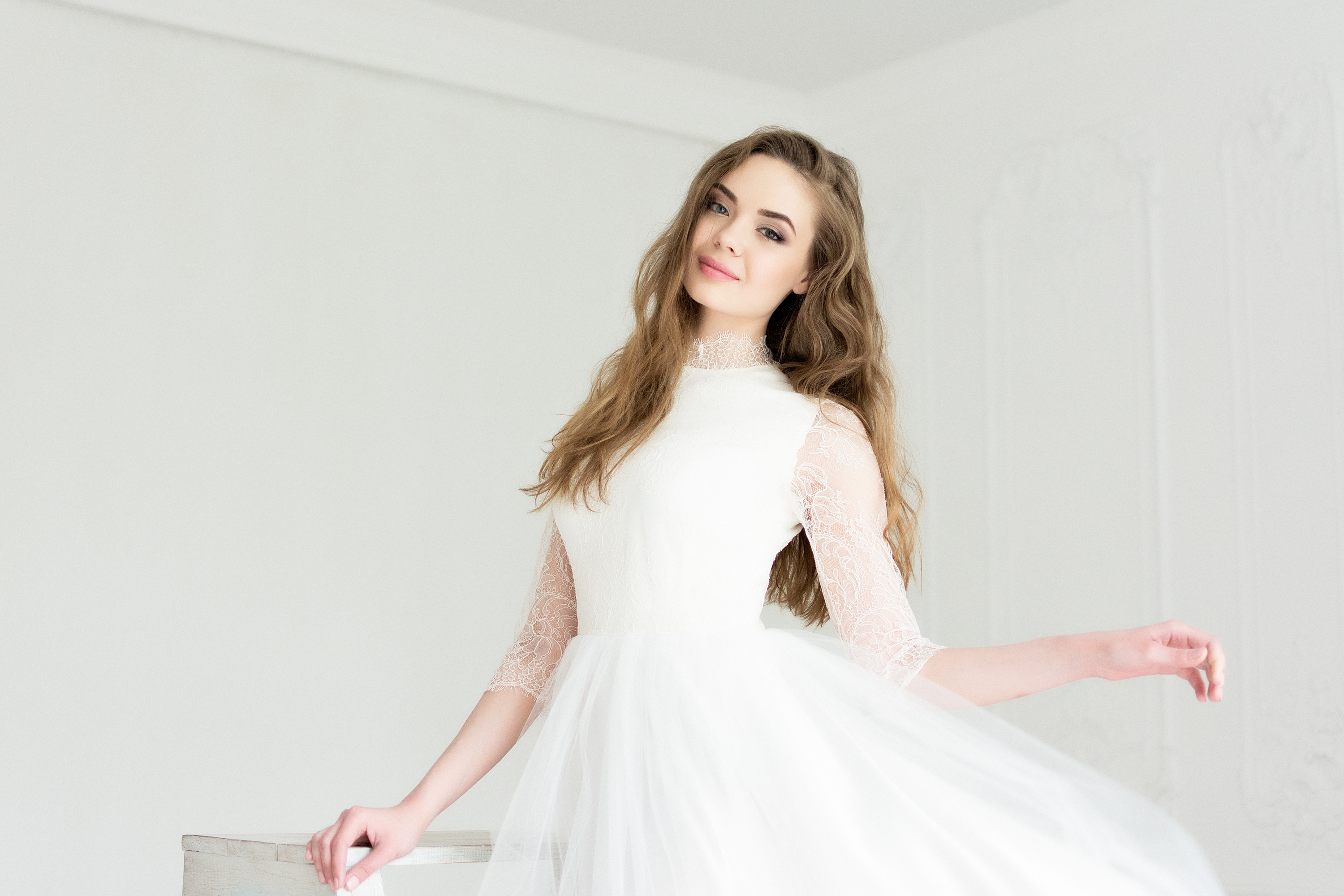 Платье Белый Закрытый верх Кружевной верх