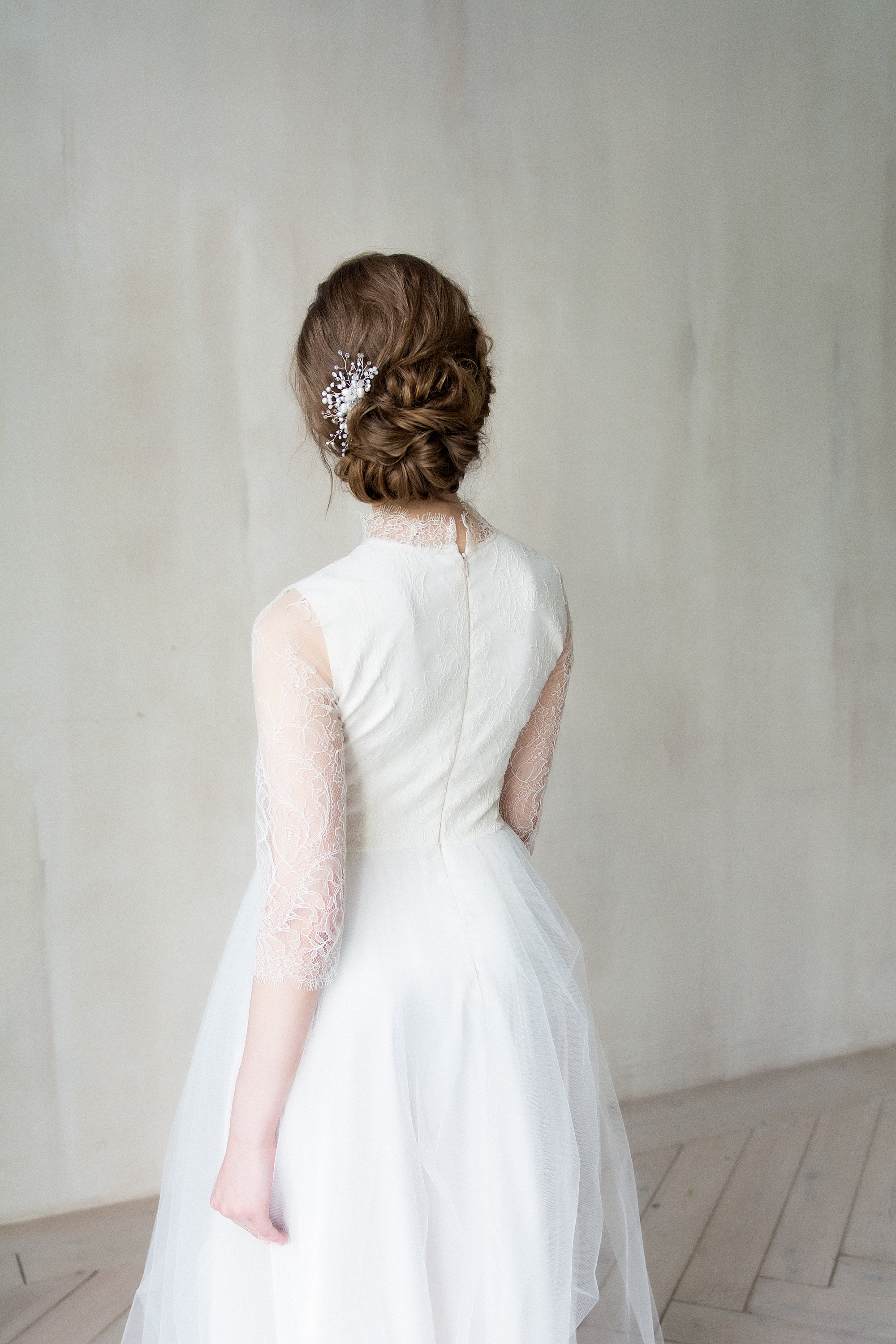 Платье Белый Длинные Закрытый верх Кружевной верх