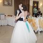 Платье невесты украсил бирюзовый атласный пояс с бантом в стиле "Завтрак у Тиффани"