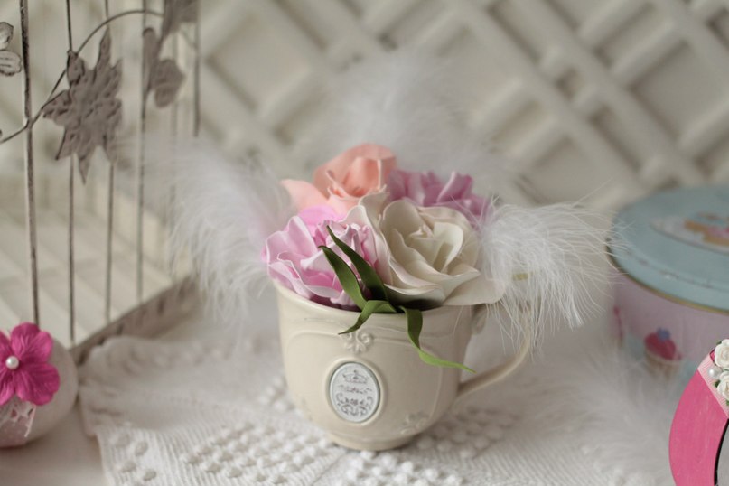 Оформление для фотосессии свадьбы в европейском стиле с использованием цветов, перьев в фарфоровой чашке - фото 1231505 Pro-decor - студия оформления