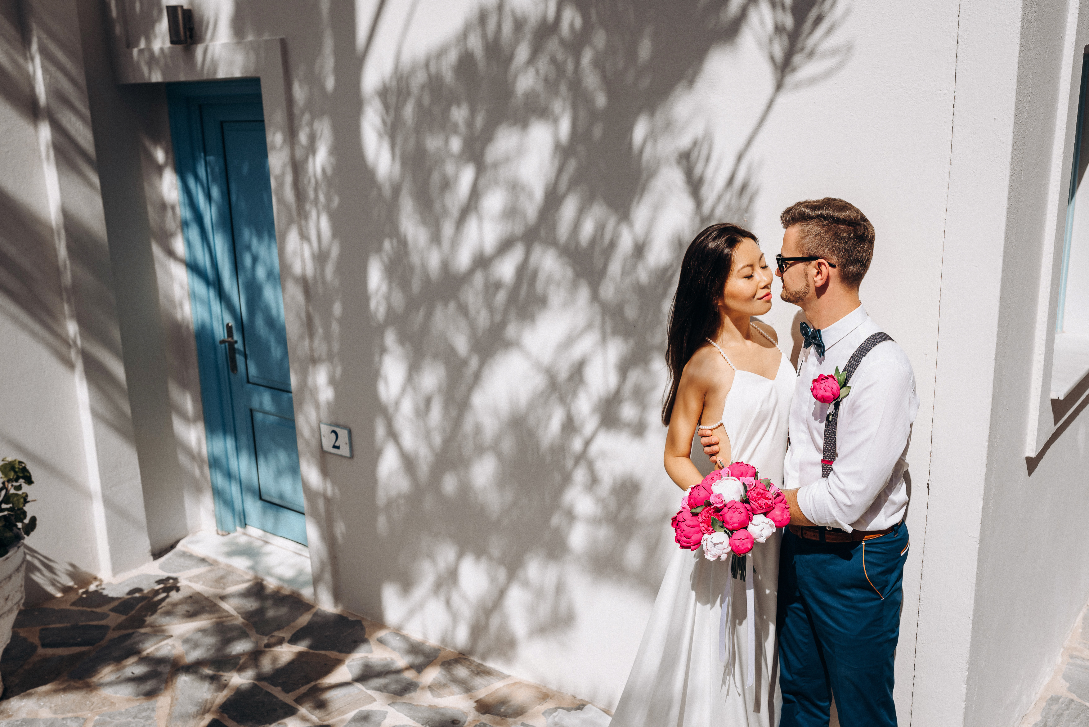 Образ жениха Белый Рубашка Брюки Синий Подтяжки