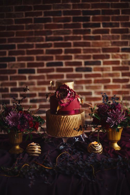 Торт Золотой Бордовый Декоративный цветок Многоярусный Мастика Лента