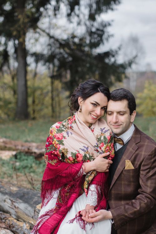 Аксессуары Этнические Айвори Бордовый Платок Принты Плечи
