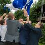 Образ жениха Голубой Бабочка Ремень Белый Рубашка Брюки