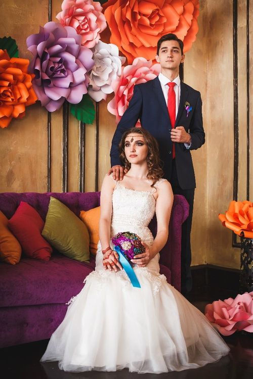 Фотоотчёт о свадьбе Оранжевый Бумажные цветы Сиреневый Розовый Белый