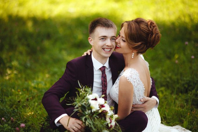 Образ жениха Фиолетовый Пиджак Белый Рубашка Галстук Принты