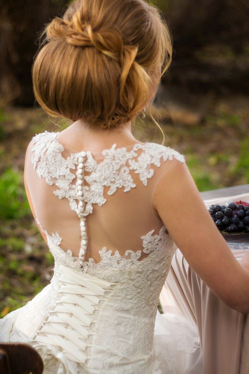 Платье Белый Пуговицы Кружевной верх Корсет Открытый верх