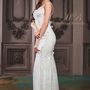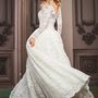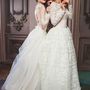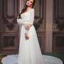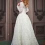 Платье Белый Длинные Пышное платье Кружевное платье Пуговицы Вырез на спине Корсет