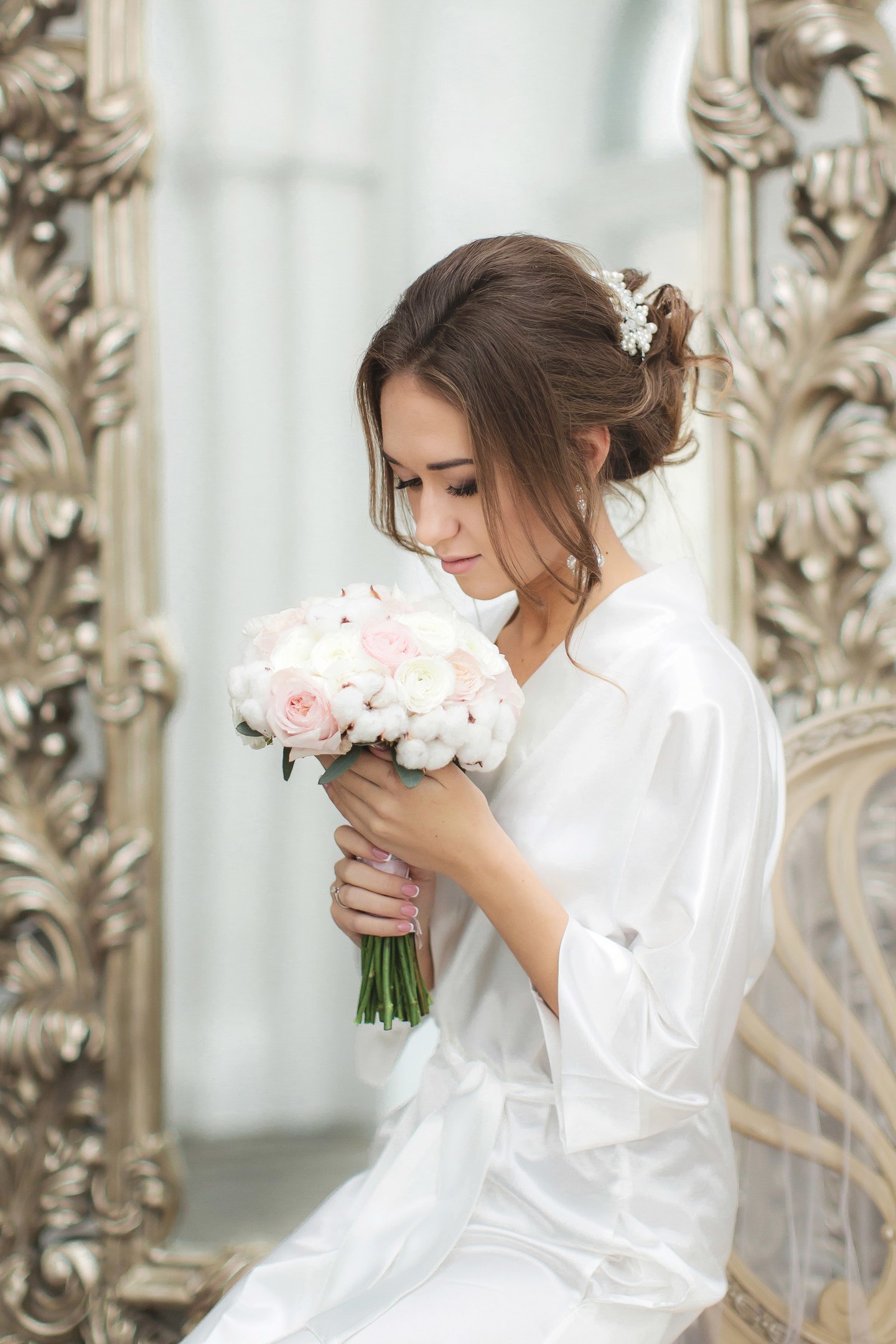 Букет Круглый букет Белый Хлопок Розовый Роза