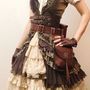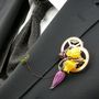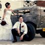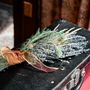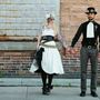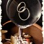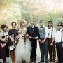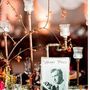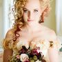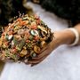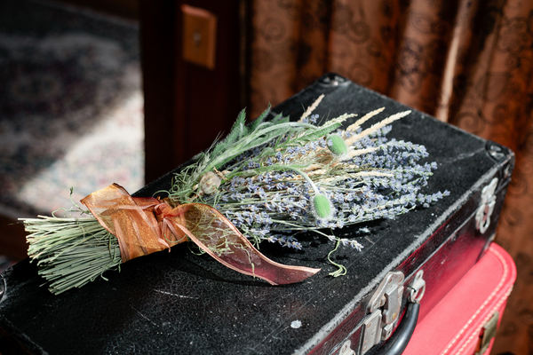 Букет невесты из синей лаванды и зелени, завязанный оранжевой прозрачной лентой, в стиле рустик