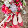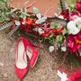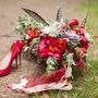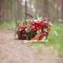 Выездная церемония Коричневый Чемодан Красный Пионы Альстромерия Зеленый Эвкалипт