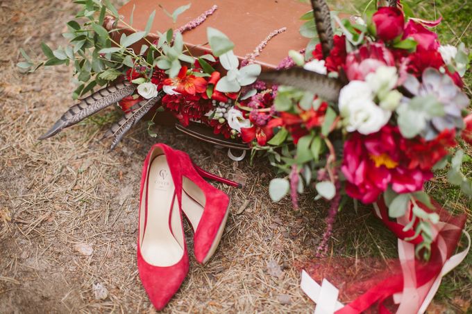 Выездная церемония Коричневый Чемодан Красный Пионы Альстромерия Зеленый Эвкалипт