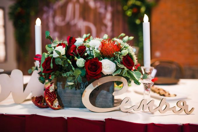 Оформление зала Коричневый Деревянная подставка Белый Подсвечник Свеча Красный Роза Протея