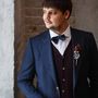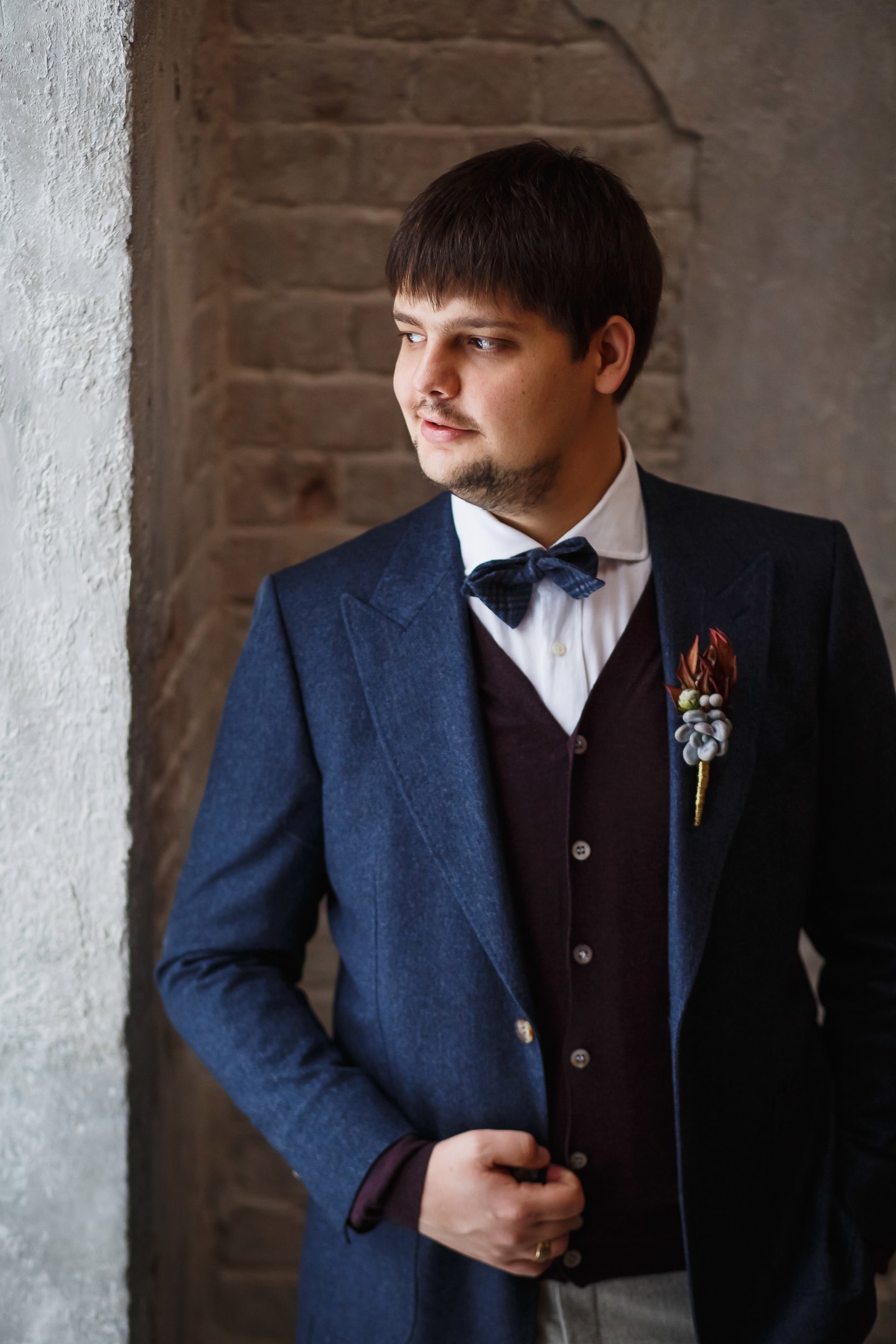 Образ жениха Белый Рубашка Черный Жилетка Бабочка Пиджак Синий