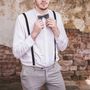 Образ жениха Белый Рубашка Черный Бабочка Подтяжки Серый Брюки