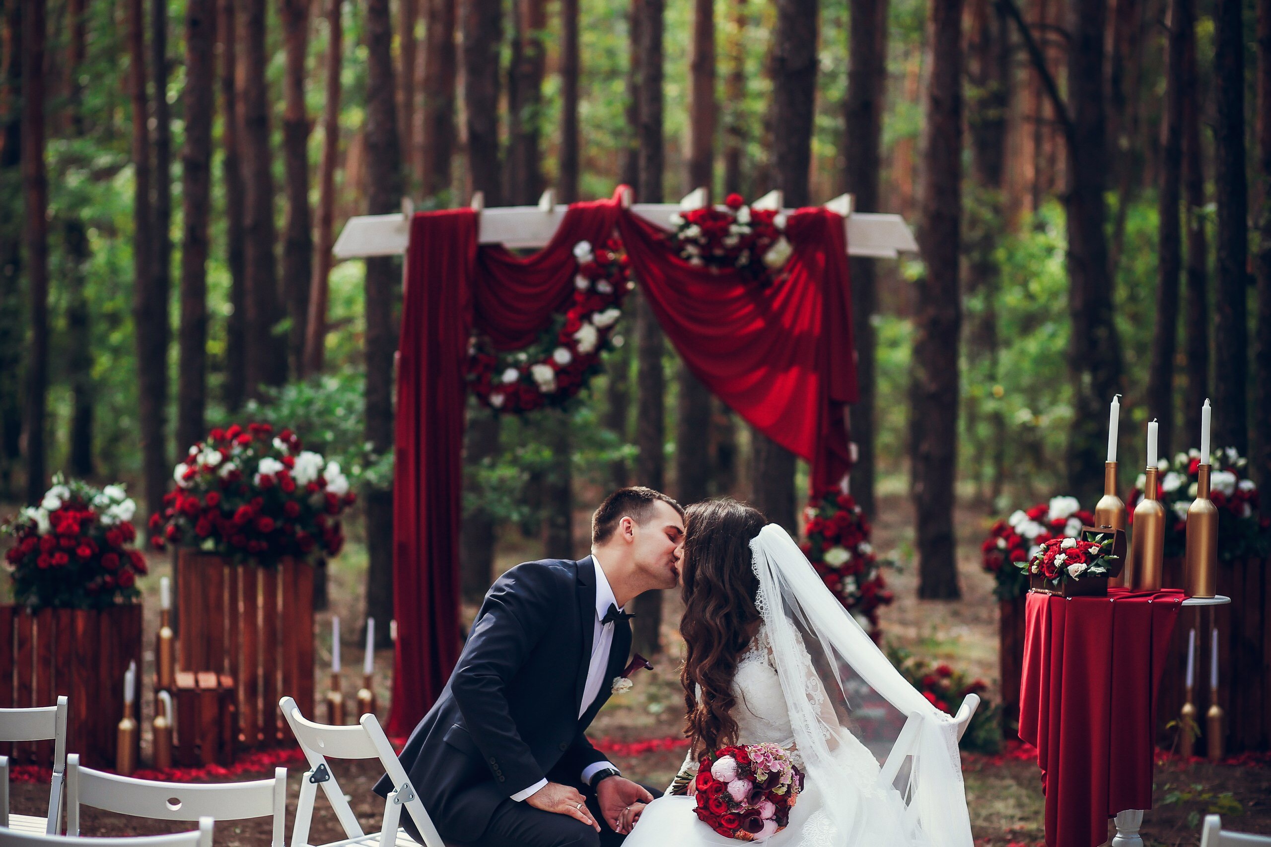 Выездная церемония Золотой Бутылка стеклянная Белый Свеча Красный Роза