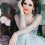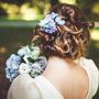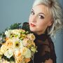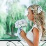 Букет Круглый букет Белый Эустома Голубой Гортензия Серый Бруния