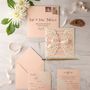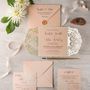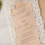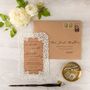 свадебные приглашения в крафт конверте, бархатная лента, кружево, дизайнерская бумага, размер приглашения в конверте 15,5см/21,5см