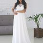 Платье Белый Длинные Айвори Прямое платье Кружевной верх Фатин Корсет Открытый верх