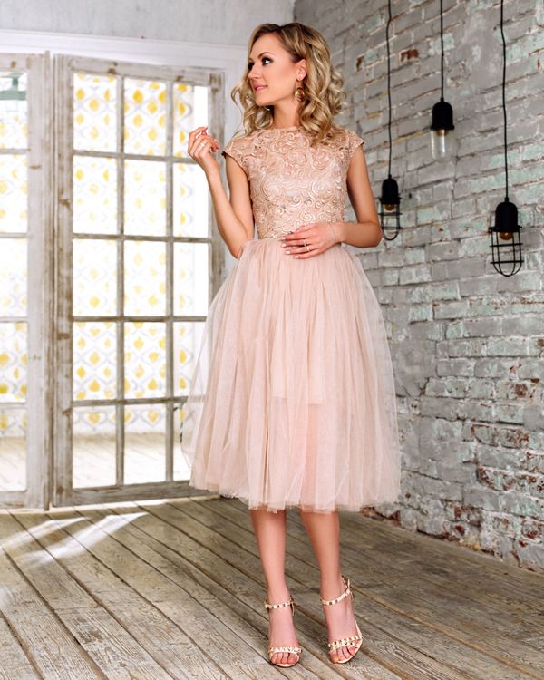 Лола (FL) Короткое вечернее платье к кружевным верхом и фатиновой юбкой