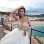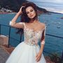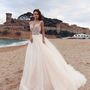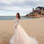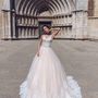 Бенедикт (MR)Романтичное свадебное платье цвета легкой пудры с кружевным верхом-маечкой и пышной фатиновой юбкой