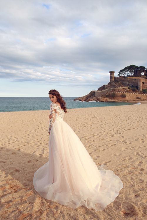 Бенедикт (MR)Романтичное свадебное платье цвета легкой пудры с кружевным верхом-маечкой и пышной фатиновой юбкой
