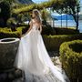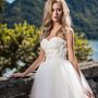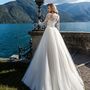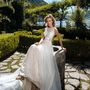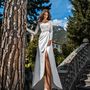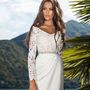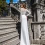 Платье Белый Длинные Айвори Годе Кружевной верх Атлас Открытый верх