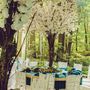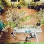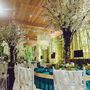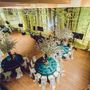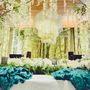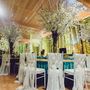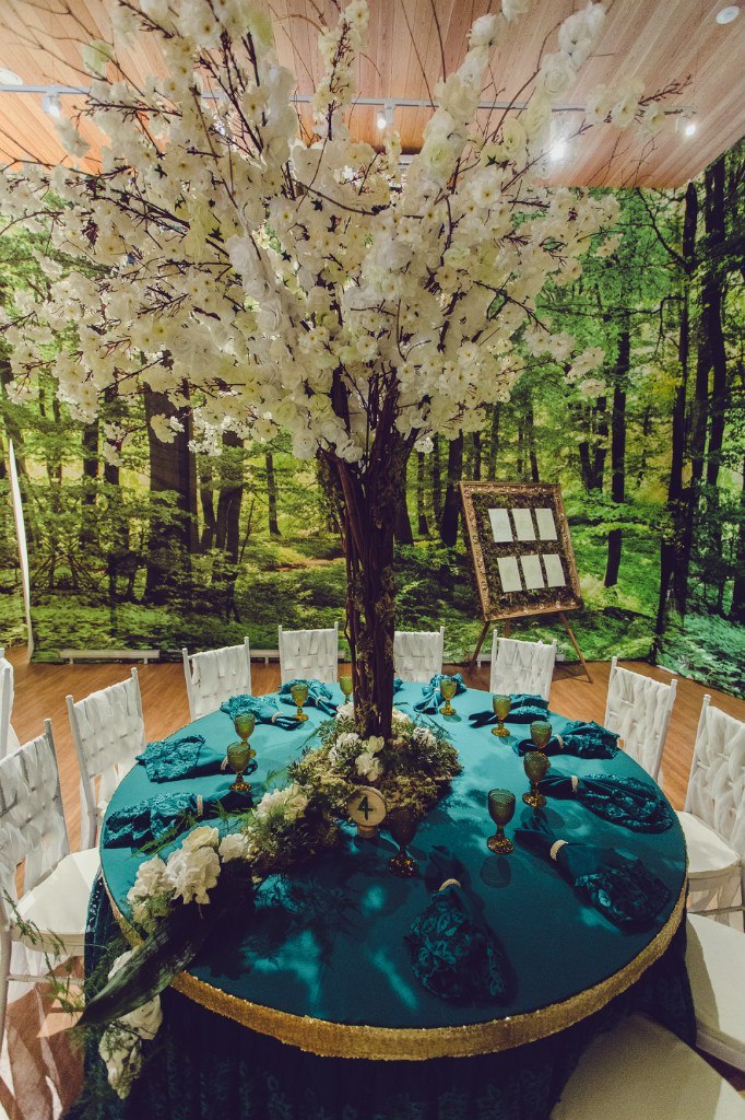 Оформление зала Золотой Стол Синий Драпировка тканью Зеленый Бокал Белый Стул
