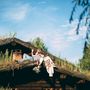 Образ жениха Белый Рубашка Бабочка Синий Голубой Жилетка Брюки