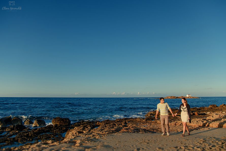 По пляжу идут жених и невеста, она в коротком платье и черной кофте, он в светлой футболке и темных брюках - фото 1704123 Елена Ярмолик - фотограф