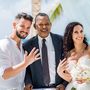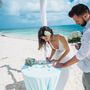 Образ жениха Голубой Рубашка Синий Шорты Белый Шляпа Черный Очки