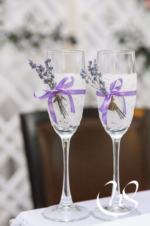 Оформление зала Белый Кружевная ткань Бокал Лаванда Синий