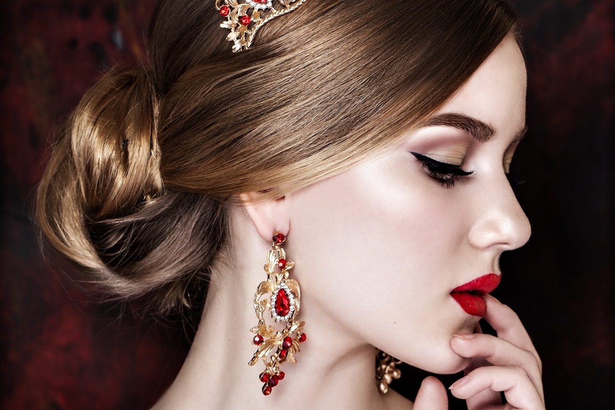 Украшения Красный Золотой Серьги Серьги-люстры Кристаллы