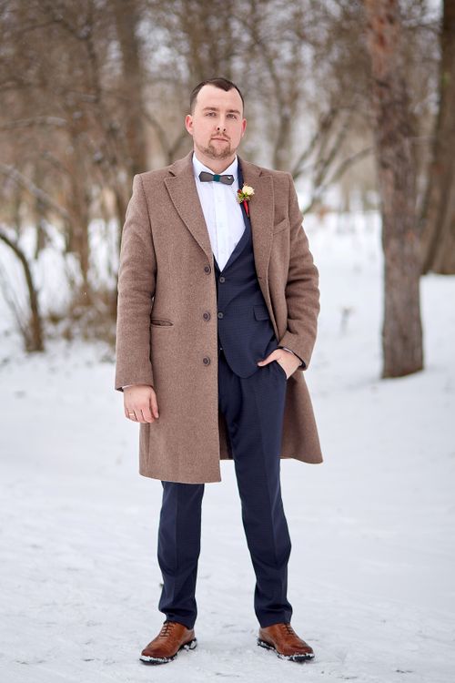 Образ жениха Белый Рубашка Двойка Синий Коричневый Пальто
