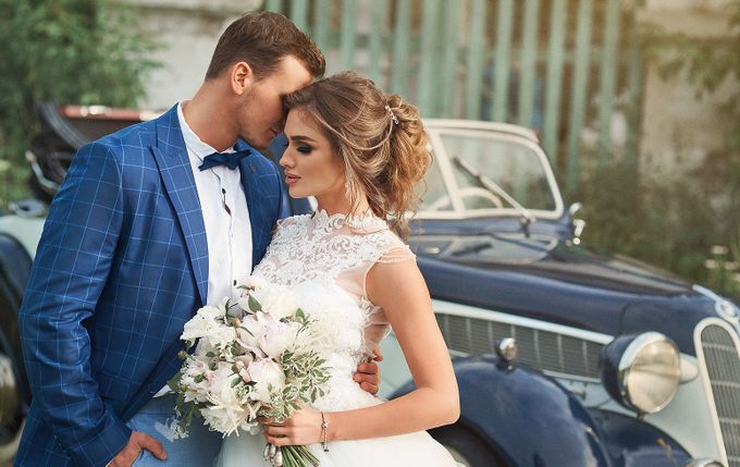 Образ жениха Белый Рубашка Пиджак Синий Принты