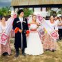 Платье Белый Открытый верх Красный Этнические Ленточка Декоративный цветок Пояс на талии