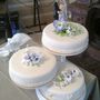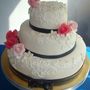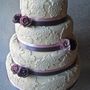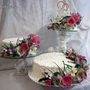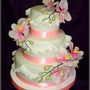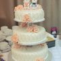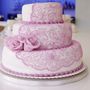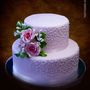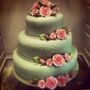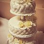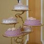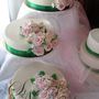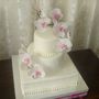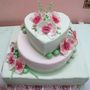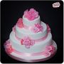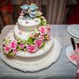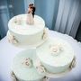 Торт Бежевый Двухъярусный Марципановая фигура Розовый Декоративный цветок Белый Зеленый