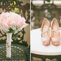 Белые босоножки на высокой шпильке в камнях и стразах, висят на двери комода.