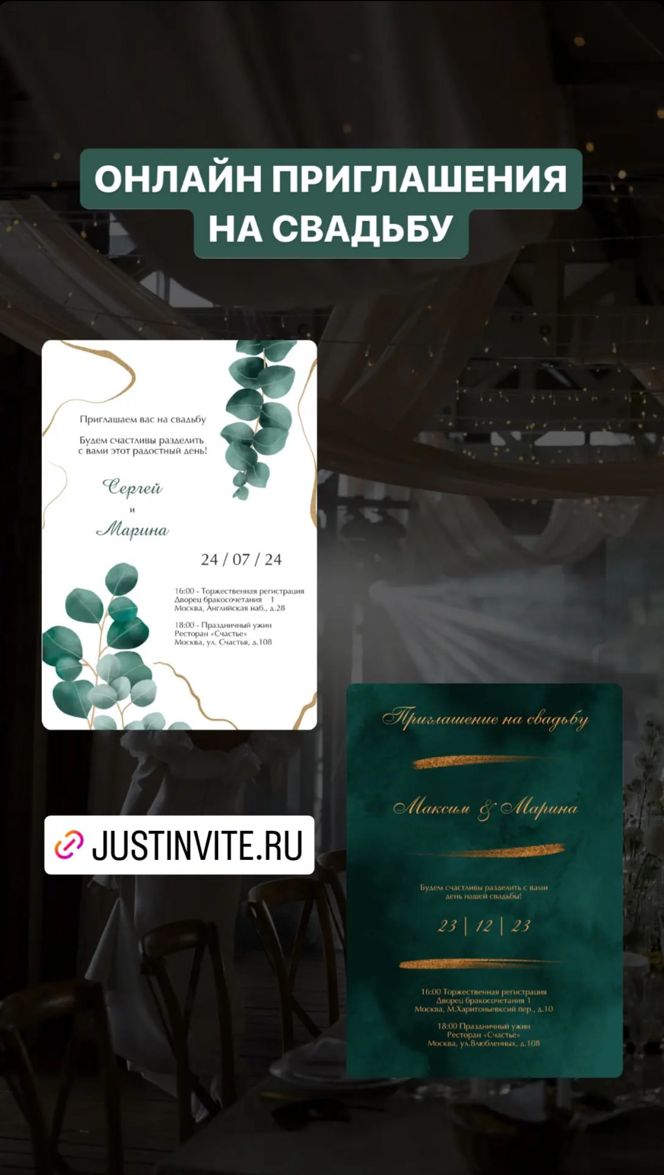 Приглашения на свадьбу и свадебный сайт в онлайн конструкторе Just Invite
