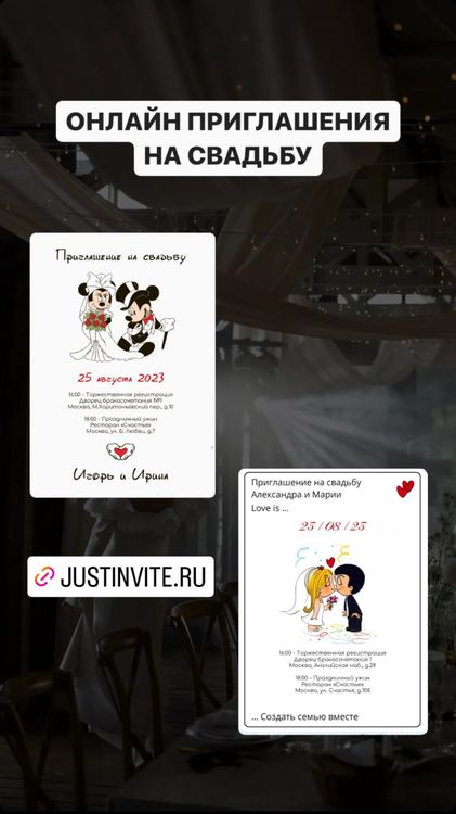 Приглашения на свадьбу и свадебный сайт в онлайн конструкторе Just Invite