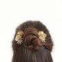 Свадебное украшение для волос из золотистого бисера, стекляруса и жемчужных бусин