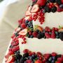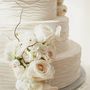 Многоярусный торт на белом креме, украшен цветами.