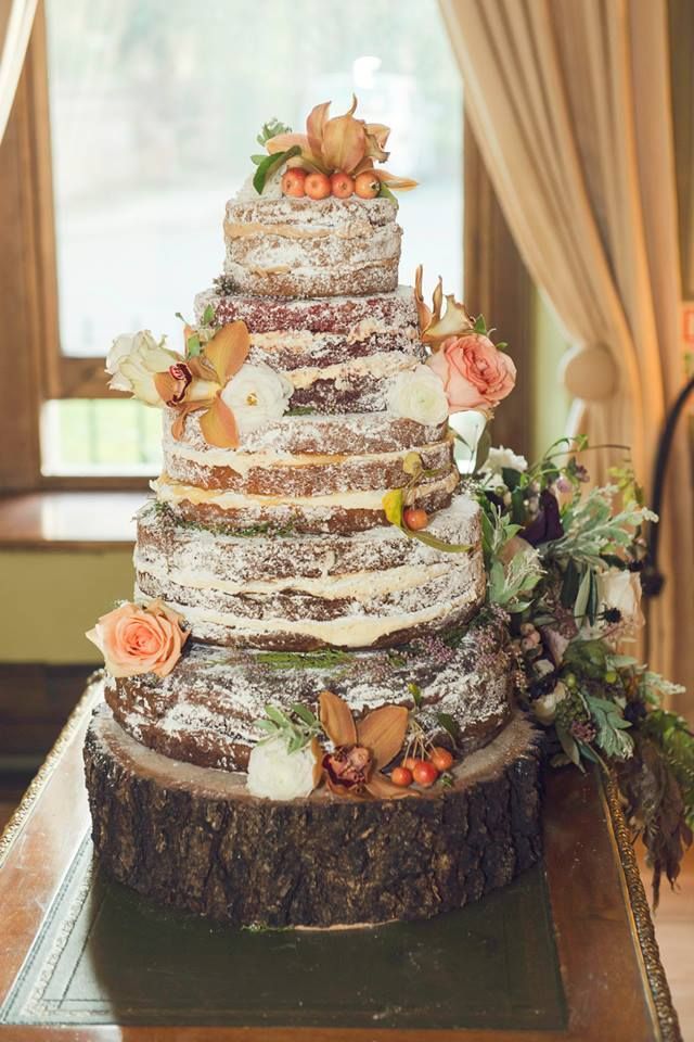 Торт Коричневый Многоярусный Открытый корж Бисквит Крем Бежевый Роза Белый Ранункулюс Айвори