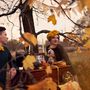 Декор осенней фотосессии love story на природе в оранжевом цвете в стиле ретро, декоратор Мария Демьянова