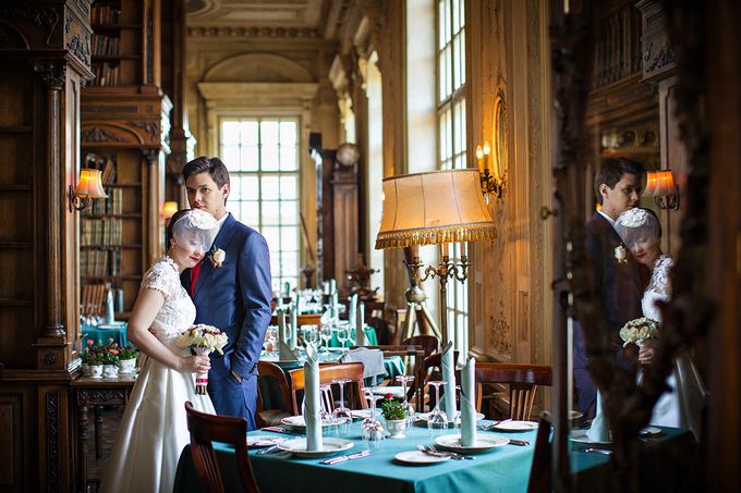 Образ жениха Двойка Синий Белый Рубашка Красный Галстук