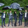 Букет Круглый букет Тейпированный букет Белый Пионы Розовый Ранункулюс Жёлтый Роза