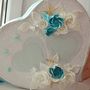 Жених в чёрном пиджаке, украшенном бутоньеркой, белой рубашке с оранжевым галстуком